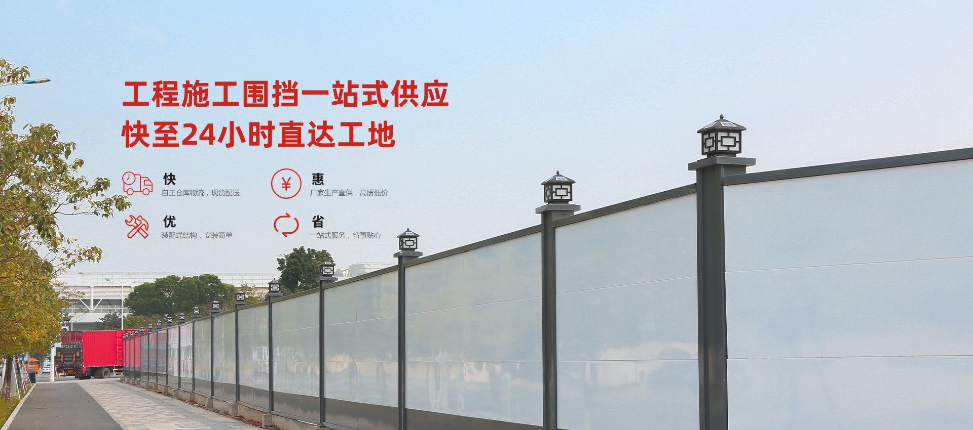 每種施工圍擋款式采用不同的現(xiàn)代美學(xué)視覺設(shè)計,立柱頂部或側(cè)面均可安裝各種造型美觀的路燈,墻體采用易保潔的圍擋專用材料,表面工地灰塵用清水沖洗即可,依然靚麗如新。